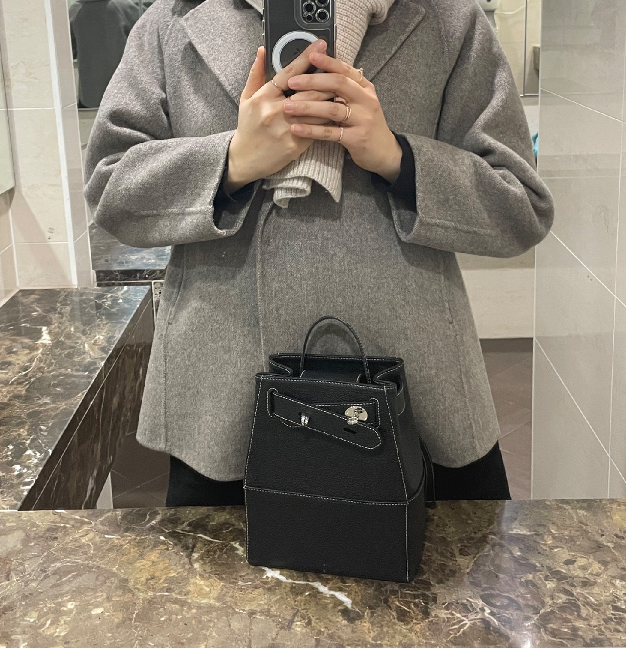 가방은 각이 잡혀있어서 마음에 들어요.
